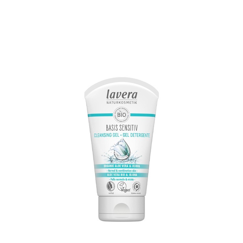 Gel limpiador basis sensitive aloe y jojoba lavera que revitaliza y equilibra la piel del cutis. Limpia con suavidad y eficacia, dejando una piel clara, fresca y radiante. Ideal para piel normal o mixta.