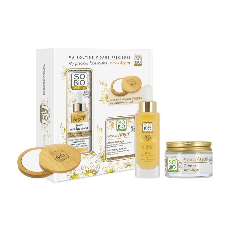 Caja Regalo Cuidado Facial Précieux Argán + Espejo de Bambú – SO’BiO étic®