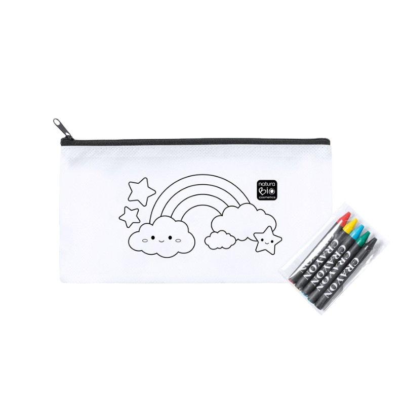 • Estuche R-PET para colorear + 5 ceras – Fabricado con plástico reciclado y diseñado para que cada niño lo personalice a su gusto.