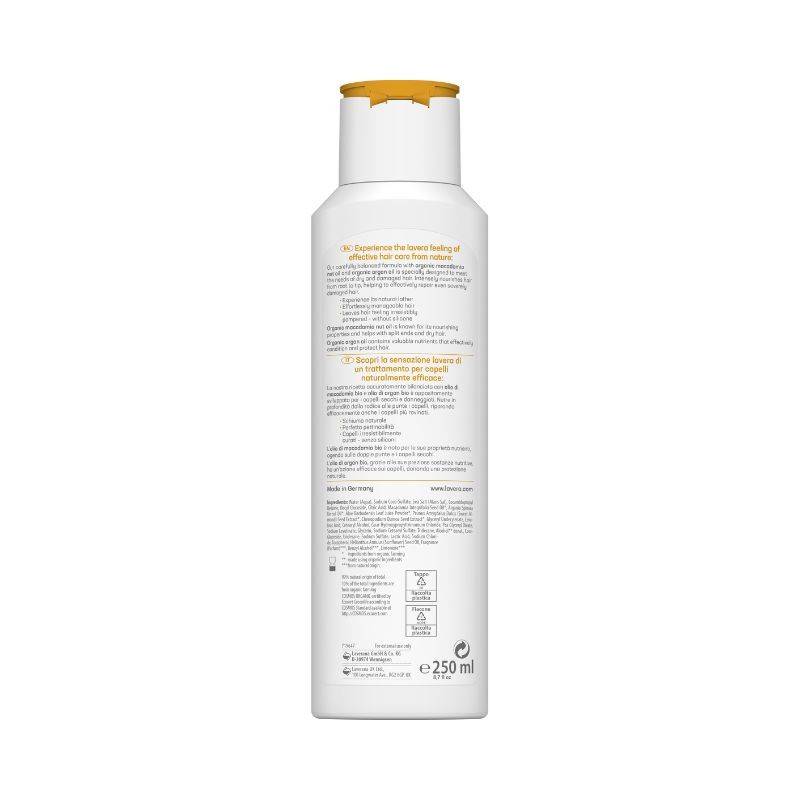 Fes massatge amb el Xampú natural Reparació experta i Cura profunda amb oli de macadàmia i quinoa Bio de lavera sobre el cabell mullat i esbandeix amb abundant aigua.