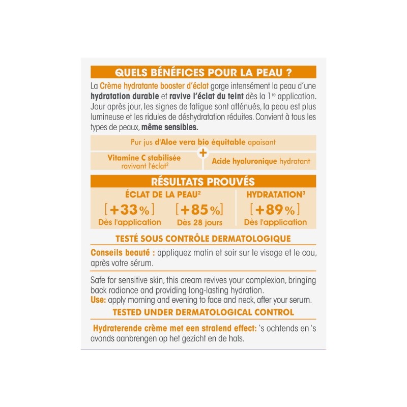 Aporta lluminositat immediata i hidratació intensa i duradora.
