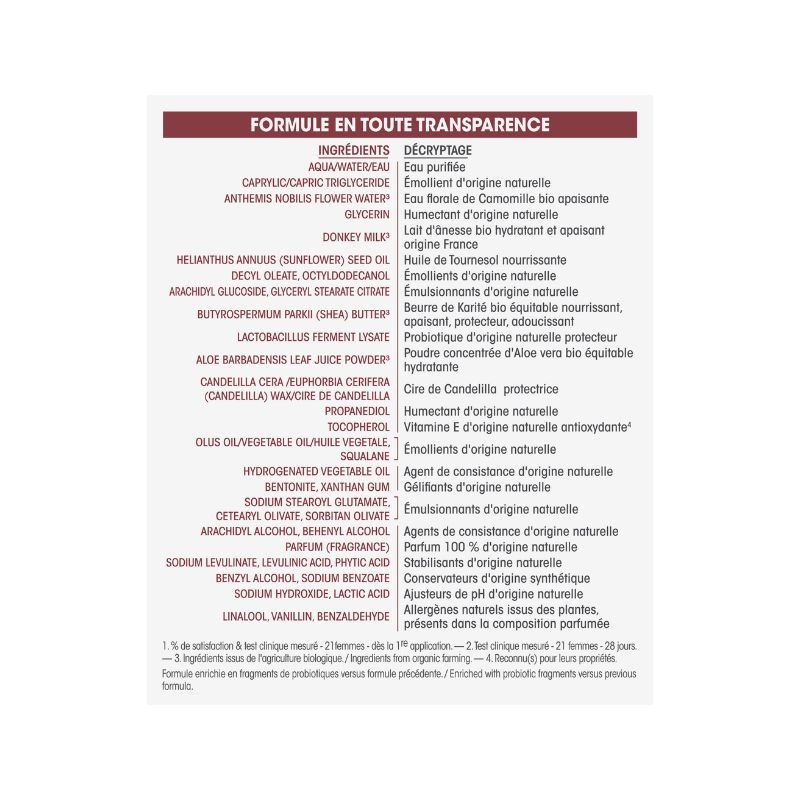Ingredients de la Crema facial nutritiva rica llet de burra SO'BiO ètic