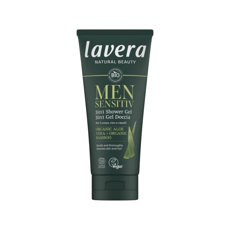 El Gel de dutxa 3en1 Men Sensitiv lavera ofereix una higiene completa i natural per a rostre, cos i cabell. Amb ingredients Bio i pH neutre. El Gel de dutxa 3en1 Men Sensitiv de lavera és ideal per a la cura diària de la pell masculina. Neteja eficaçment la cara, el cos i els cabells respectant l'equilibri natural de la pell, fins i tot la més sensible. La seva fórmula vegana, amb ingredients Bio com àloe vera, bambú, chía i guaranà, proporciona frescor, hidratació i energia en un sol gest.